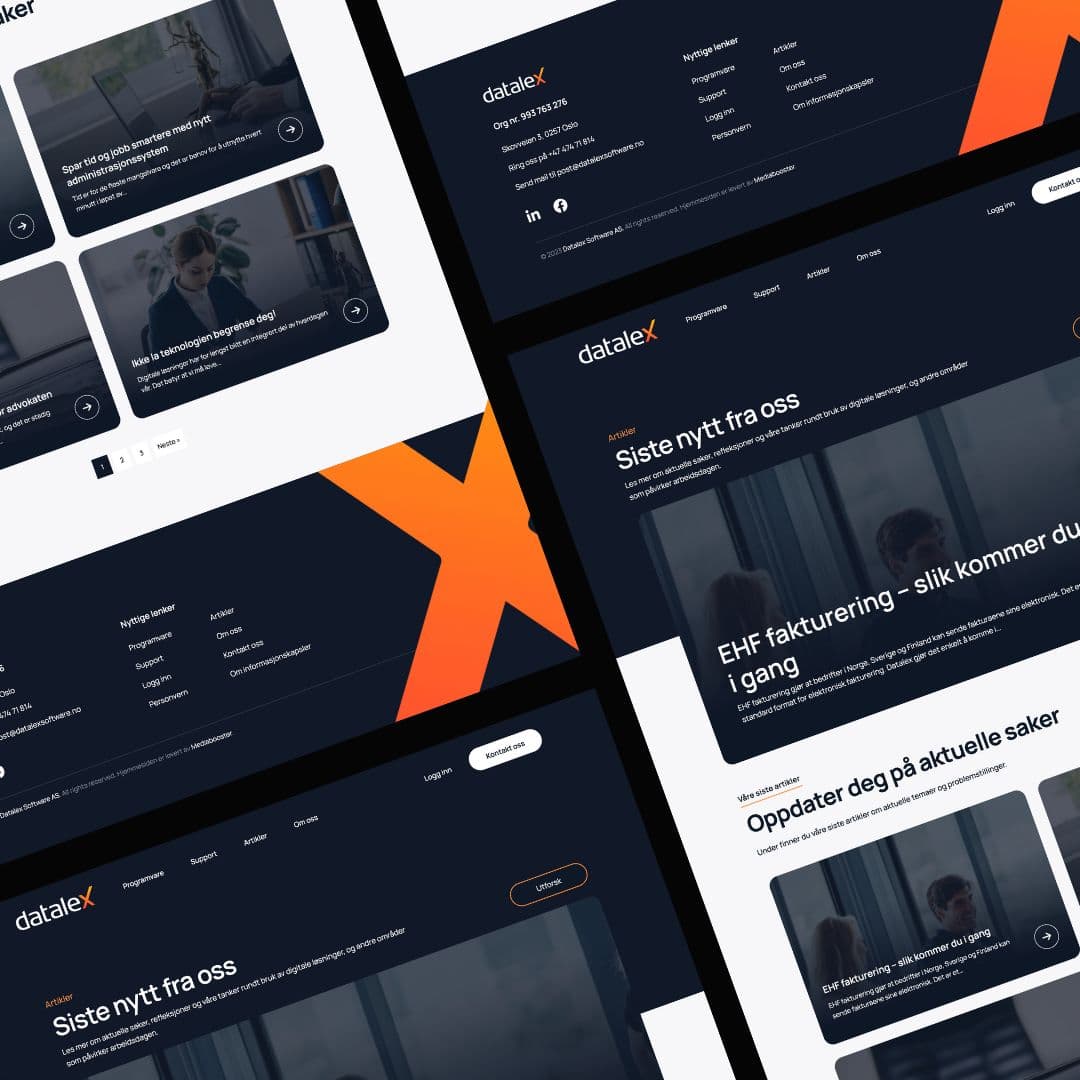 Datalex Software leverer administrasjonssystemer til advokater over hele landet, og har et tydelig fokus på kontinuerlig utvikling. De ønsket en ny nettside som bedre reflekterte deres rolle som moderne programvareleverandør – samt en oppdatert logo som fremstår som ny, men fortsatt gjenkjennelig.