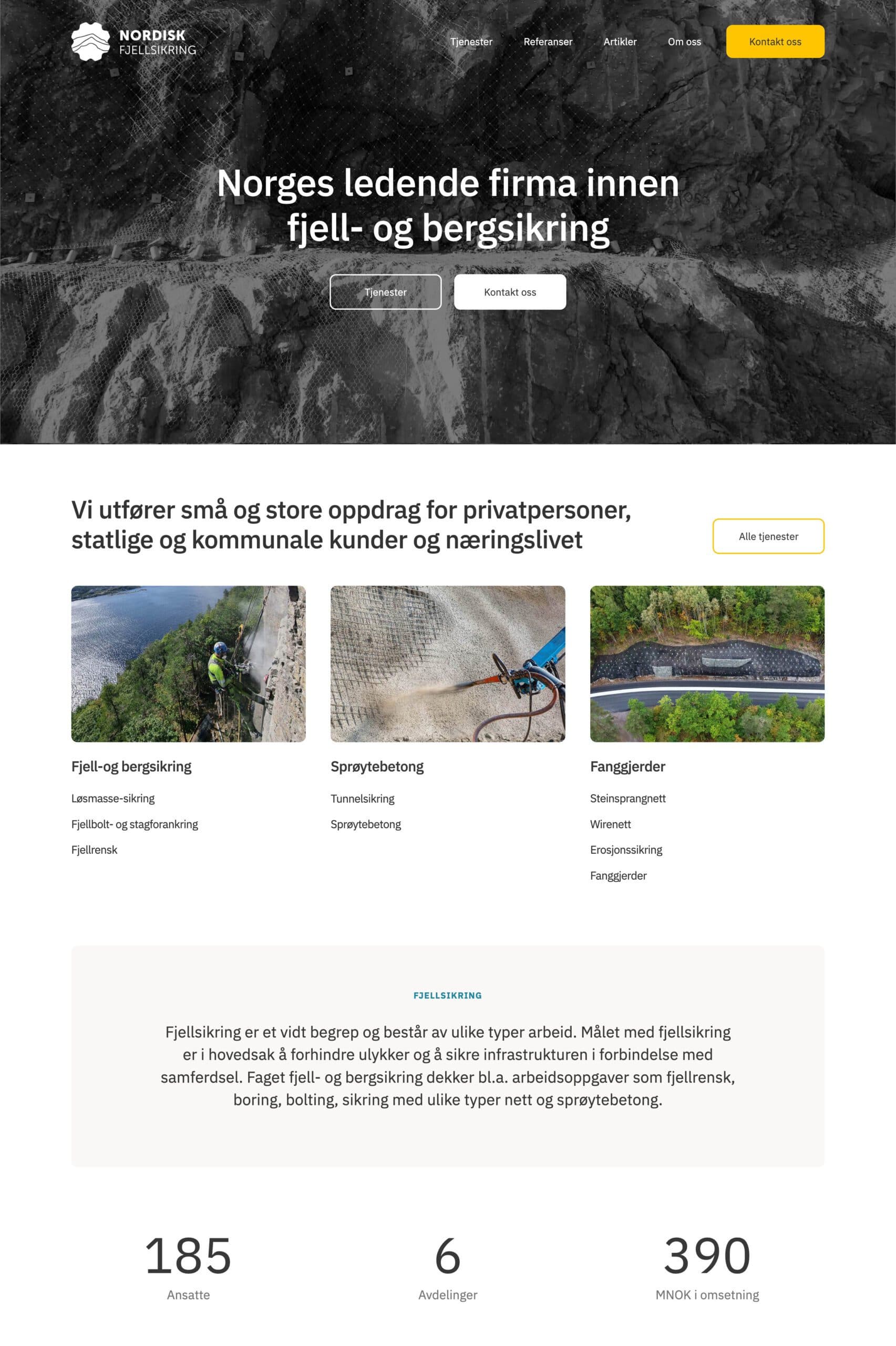 Etter sammenslåingen mellom Gjerden Fjellsikring og Visinor Fjell ble Nordisk Fjellsikring AS etablert – en spesialist på fjell- og tunnelsikring med ambisjoner om å vokse i hele Norden. For å lykkes med dette, trengte selskapet en tydelig digital tilstedeværelse som reflekterte deres nye merkevare, styrket synligheten og konverterte besøkende til henvendelser.